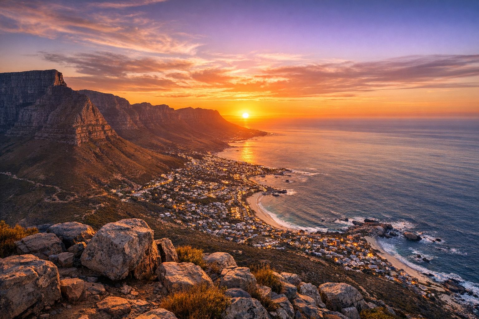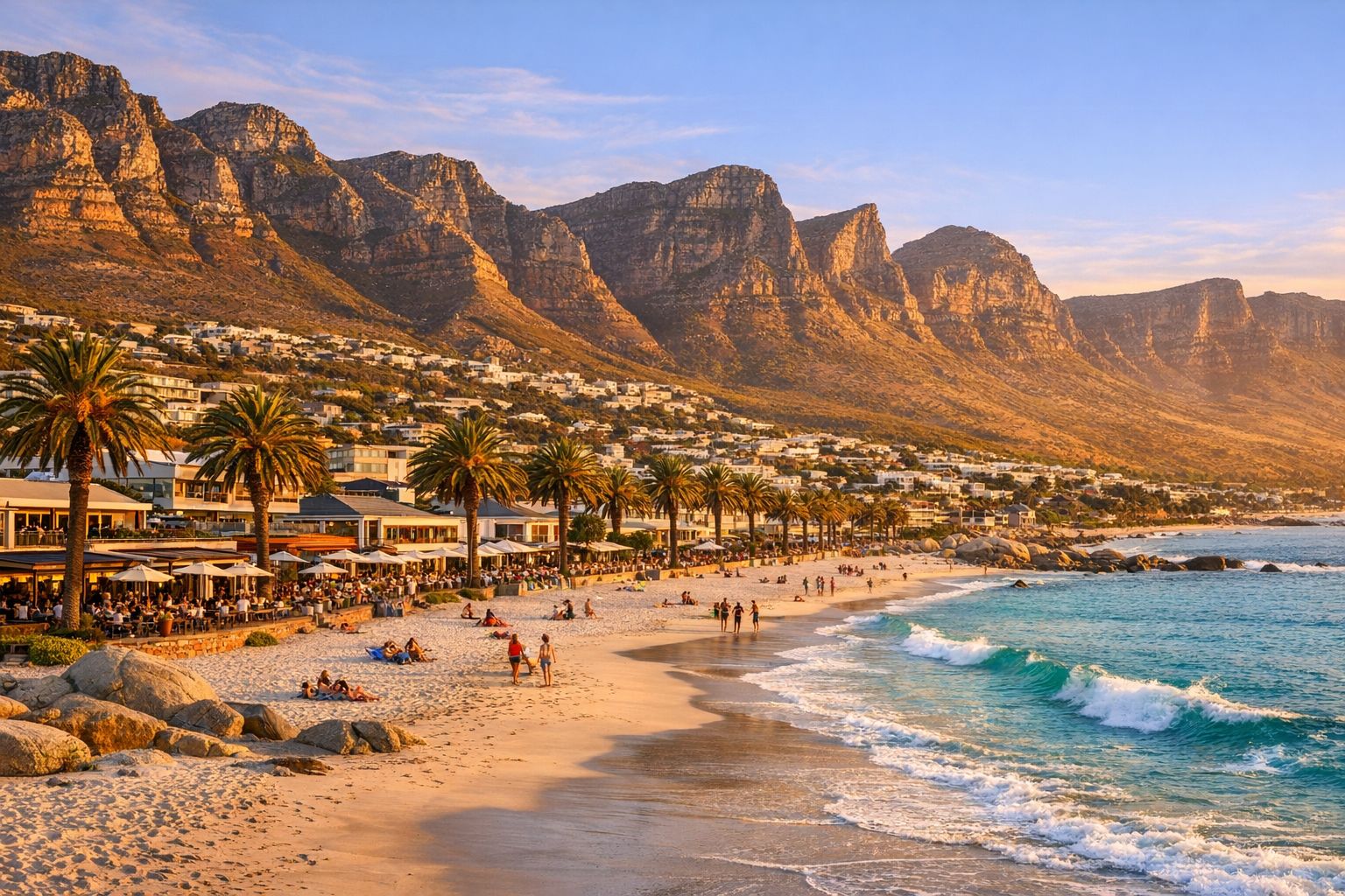 Table Mountain presides over a city where African wildlife meets world-class wine, and the Atlantic meets the Indian Ocean at the continent's dramatic tip. You'll breakfast with penguins at Boulders Beach, lunch in the Franschhoek winelands, and watch the sunset from Chapman's Peak.