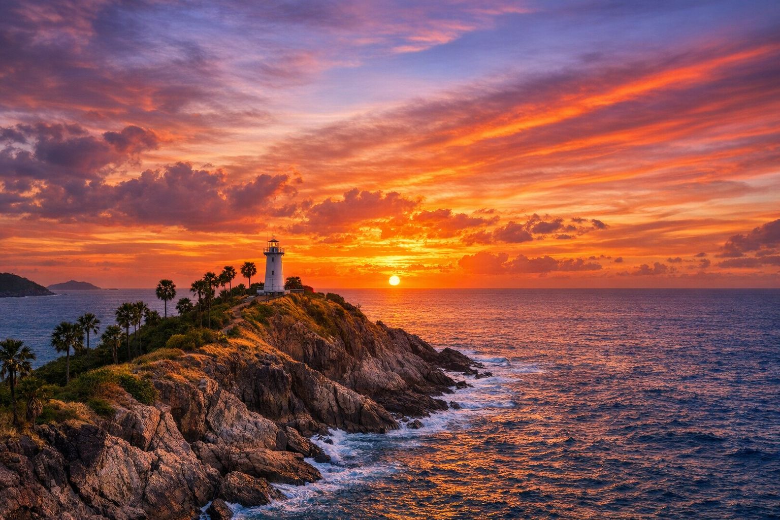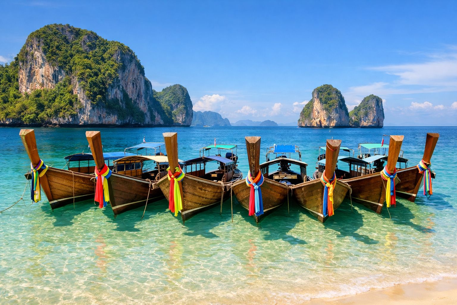 Limestone karsts rise from emerald seas, long-tail boats nose into hidden coves, and the aroma of lemongrass and chilli drifts from beachside grills. You'll kayak Phang Nga Bay's sea caves by day and watch the Andaman sky ignite from Promthep Cape at sunset.